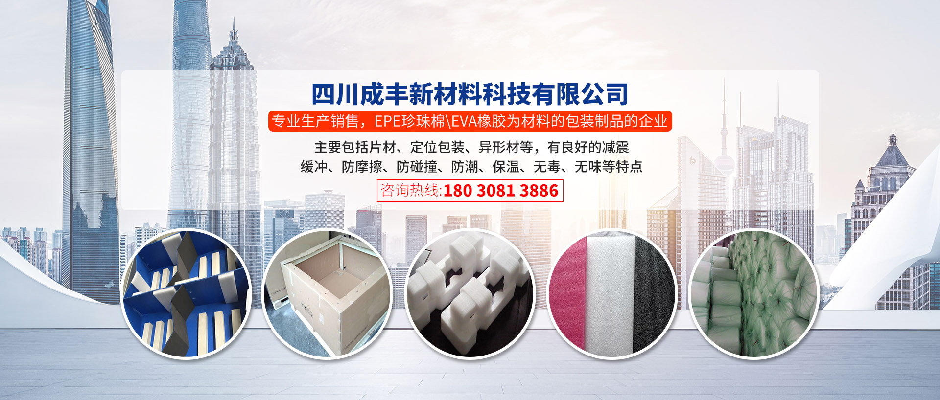 四川成豐新材料科技有限公司位于四川省德陽市旌陽區圖門江路30號,公司成立以來一直專業、誠信為客戶服務。現在是一家專業生產銷售,EPE珍珠棉\EVA橡膠為材料的包裝制品的企業,包括片材、定位包裝、異形...